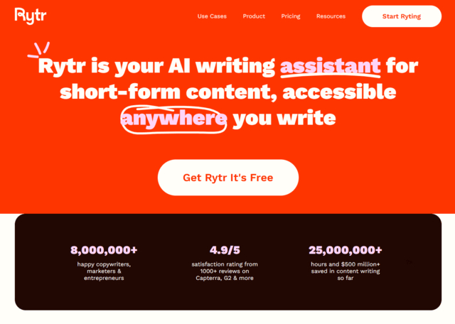 Rytr is a lightweight, budget-friendly writer that’s great for short essays, responses, and section-level drafting.