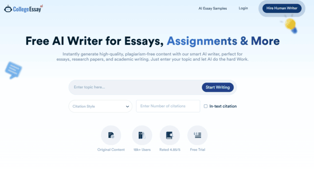 Originally a professional essay writing service, CollegeEssay.org now offers its own AI Essay Writer built specifically for academic and admissions writing.