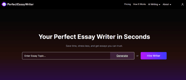 PerfectEssayWriter.ai focuses on turning prompts and research notes into clean, academically structured essays.